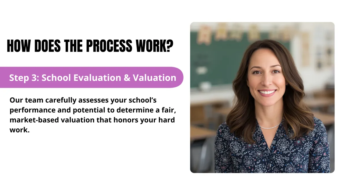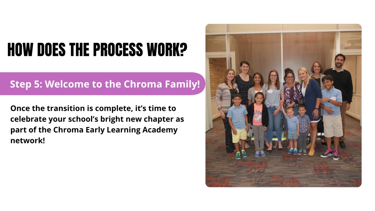 Since Chroma is privately held and not subject to the whims of investors, we have a great deal of leeway in making acquisitions and forming partnerships. We can purchase schools with the following characteristics: